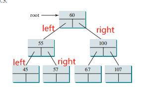 - 一种特殊类型的二叉树,称为二叉搜索树,它具有以下特点:A special type of binary trees, called binary search tree is a binary tree with