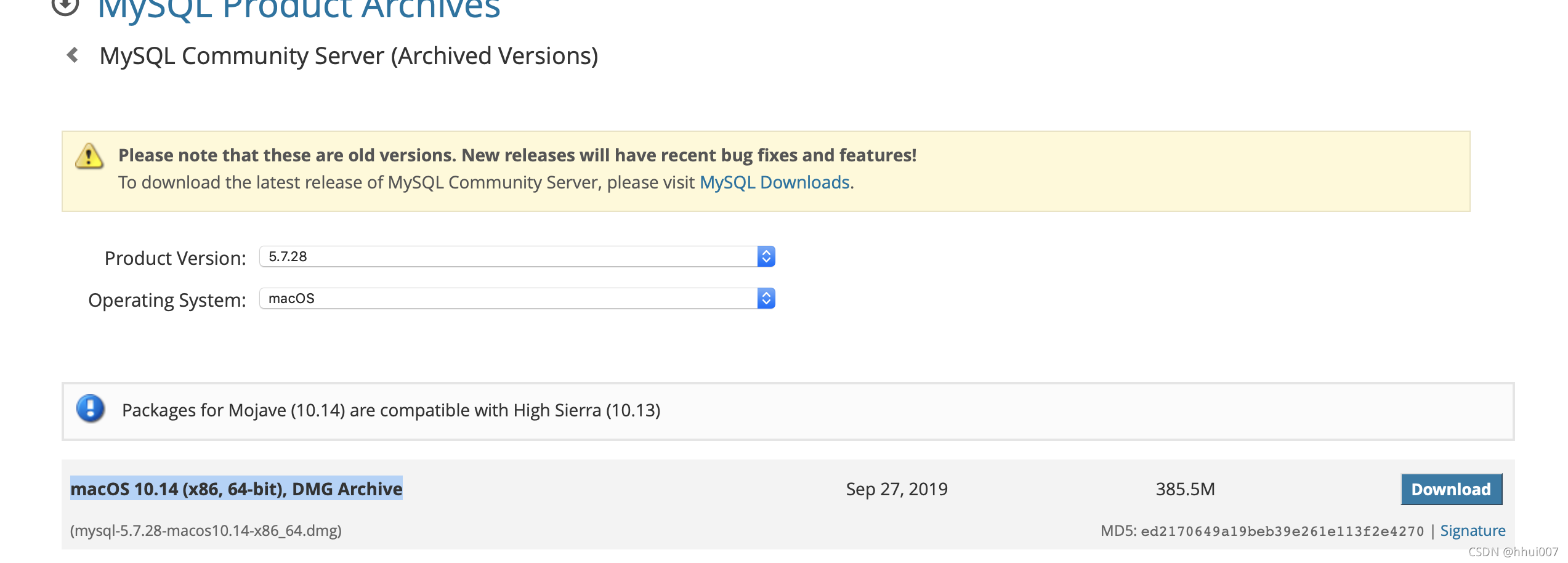MySQL :: Download MySQL Community Server (Archived Versions)