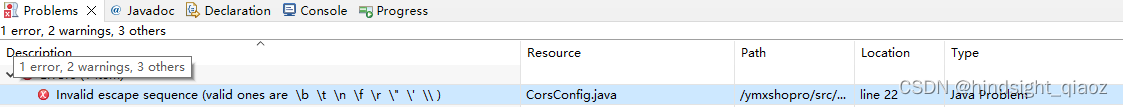 编写跨域配置类时,遇到如图所示问题: