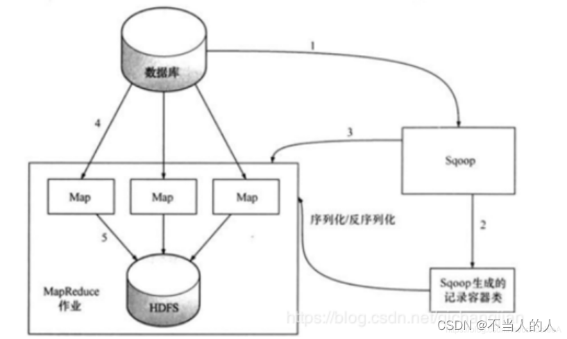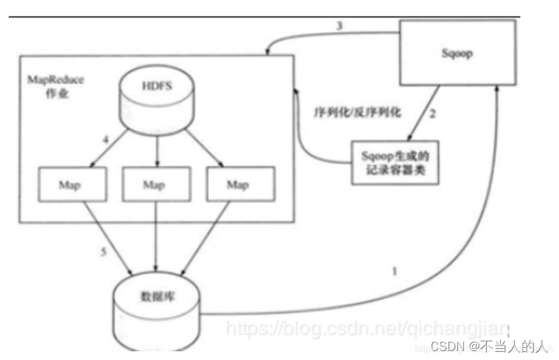 - 最后将这些记录写到hdfs上,在写入hdfs的过程中,同样会使用sqoop生成的类进行反序列化。