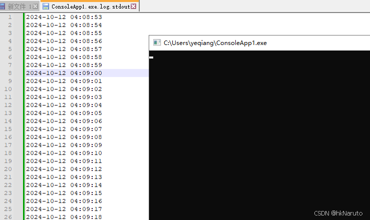 由于重定向了输出,因此控制台的内容就输出到了日志文件,控制台本身就没有输出了。(符合后台服务程序 的效果)