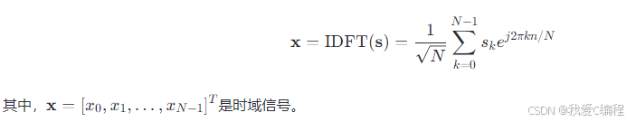 在OFDM系统中,数据被分割成多个子载波,每个子载波上传输一个较低速的数据流。假设系统有N个子载波,发送的数据向量为s=[s0,s1,…,sN−1]T,其中si是子载波i上的数据符号。在发送端,通过IDFT(Inverse Discrete Fourier Transform, 离散傅里叶逆变换)将频域信号转换为时域信号: