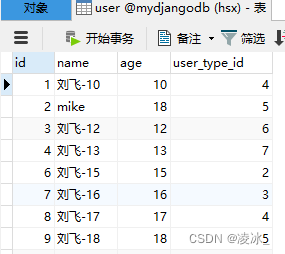 User.objects.create(name=f'刘飞-{i}', age=i, user_type_id=i % 7 + 1)