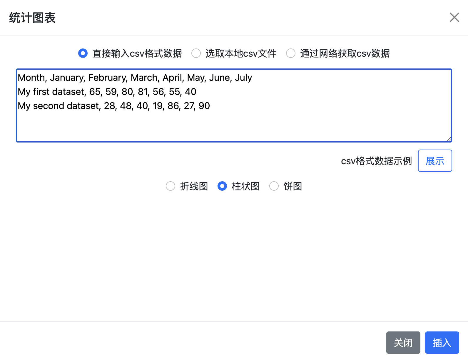 - 插入统计图表