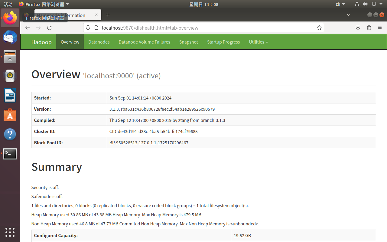 ubuntu下部署hadoop3.1.3伪分布系统 Hadoop是apache开发的,分布式服务器集群上存储海量数据并运行分布式分析应用的开源框架。其核心部件是HDFS与MapReduce。HDFS是一个分布式文件系统,MapReduce是一个分布式计算框架。说通俗点,HDFS像是一个可以动态扩展的用来存储大规模数据的大硬盘,MapReduce像是一个计算引擎,通过规则编写程序,用于完成指定的计算任务。【所需软件】以上两个资源以及后面要用到的hbase,可从我的迅雷网盘中下载:rnfk。