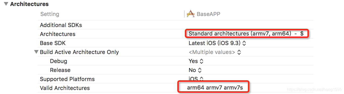 1.Build Setting->Architectures查看是否包含arm64指令集