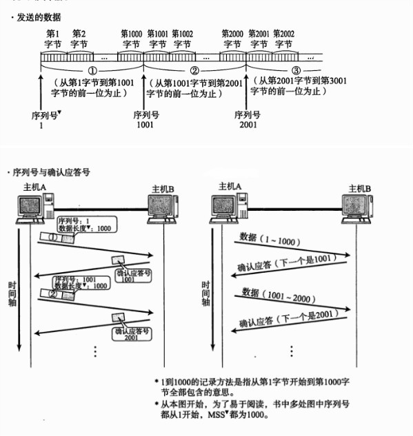 上述的这些确认应答处理,重发控制,以及重复控制等功能都可以通过序列号实现,序列号是按顺序给发送数据的每一个字节(8位字节)都标上号码编号,接收端查询接受数据TCP首部中的序列号和数据的长度,将自己下一辈应该接受的序列号作为确认应答发送回去。就这样,通过序列号和确认应答号,TCP可以实现可靠传输。