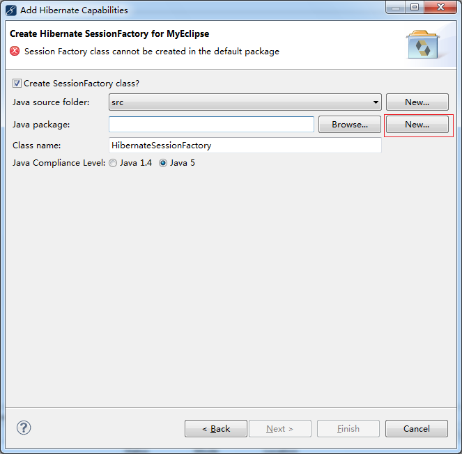 选择你项目的src目录,填写一个反向生成后,类放哪个包下