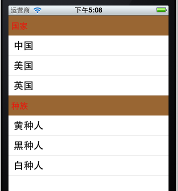 titleArray = [[NSMutableArrayalloc] initWithObjects:@"国家", @"种族", nil];//初始化标题数组