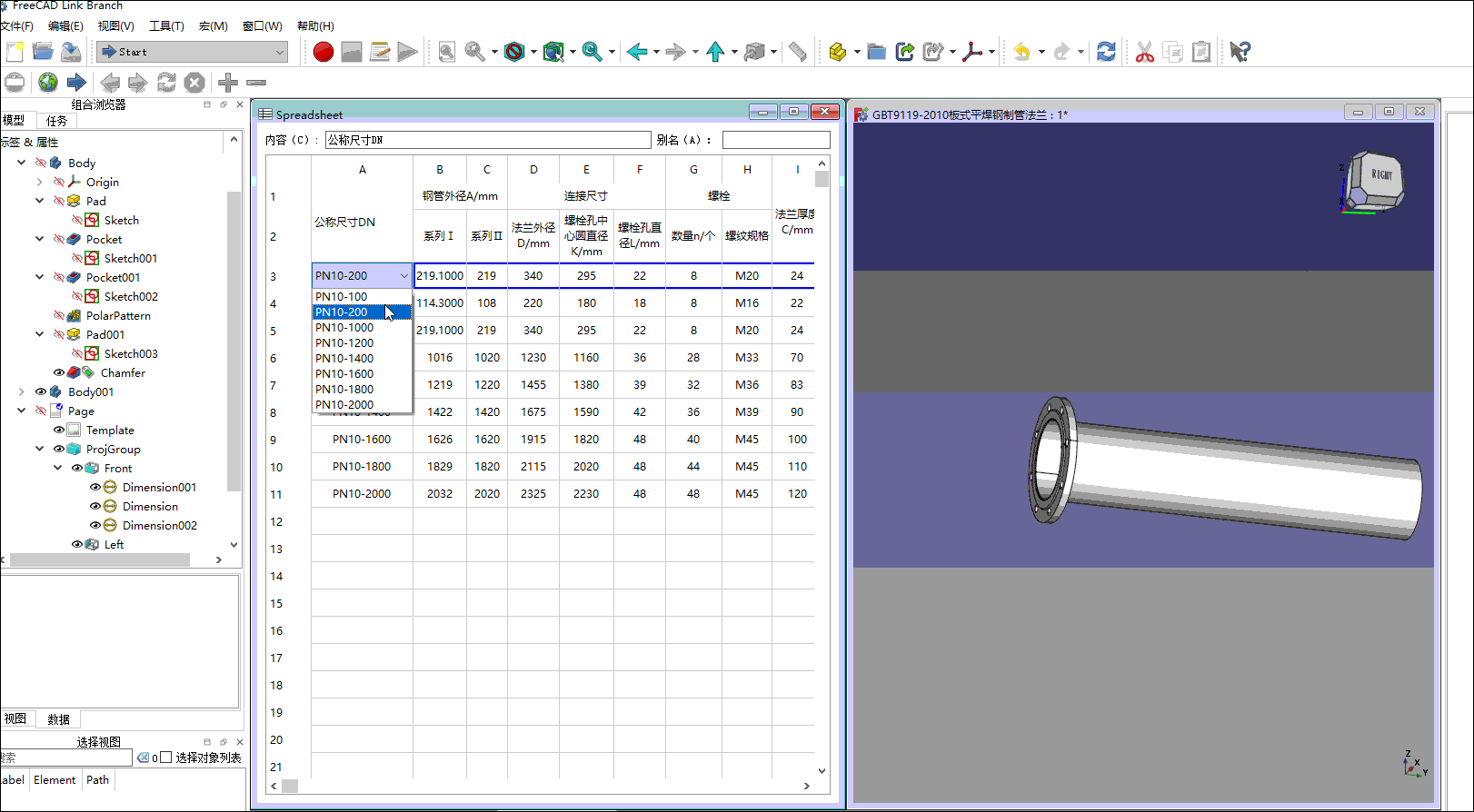 说回参数化模型,例如我们应对几百座盾构工作井,地铁也好,盾构输水隧洞也好,动辄上百座,在参数化模型里,只要在FC表格里设计好参数列表,任意选择下拉切换一下,就是对应的模型了。如下图动画所示,大家知道法兰的各种产品组合,除了直径,还有压力等级,所以组合下来很多,用参数化,建一个即可,简直不要太方便。