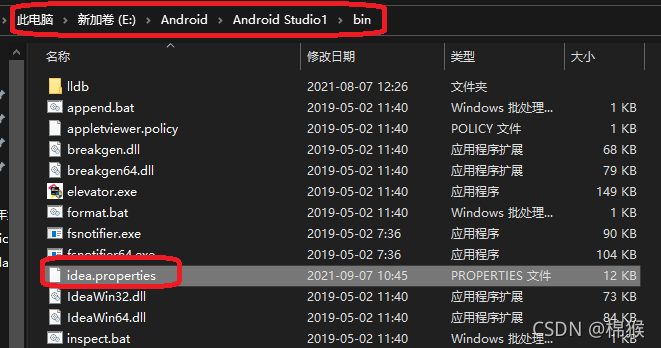 idea.properties文件位于“Android Studio安装路径\bin\”中,如图3所示。