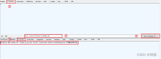 TextView Inspector以文本形式查看请求数据和响应数据,如图4①所示。