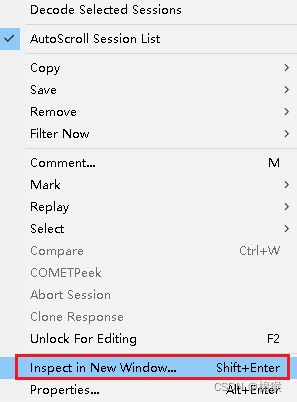 第二种打开inspector是先在界面左侧抓取到的数据列表中选定数据,之后在右键菜单中