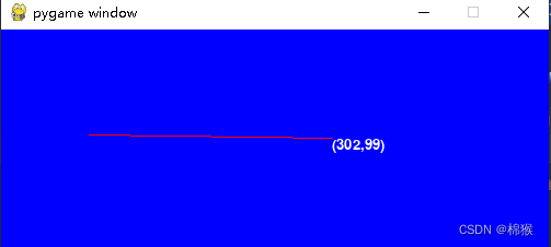 当松开鼠标时,其对应的事件是MOUSEBUTTONUP,此时将鼠标坐标保存为直线的终点,根据起点和终点,通过pygame.draw.line()方法,在屏幕中画线。