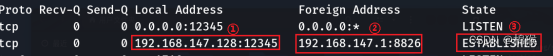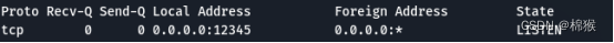 运行以上代码,可以看到服务端的12345端口处于TCP协议的监听状态(LISTEN),如图2所示。
