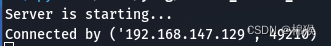从图3所示的服务端界面中可以看出,当服务端接收了客户端1(192.168.147.129)的连接后,代码会阻塞在recv()函数处,等待客户端1发送数据,如果客户端1一直没有发送数据,则服务端代码会一直阻塞,不会再继续运行。