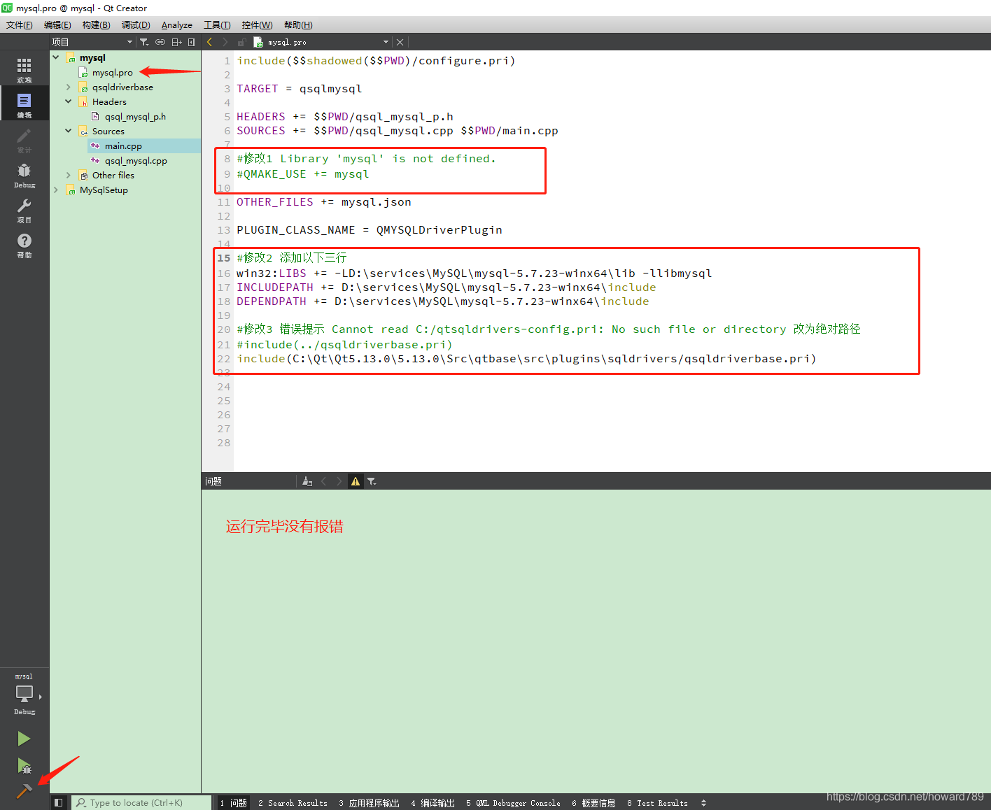 整个流程就是用Qt打开源代码里Mysql的驱动项目,修改pro文件,编译(解决编译过程中的报错,主要是路径的错误),然后就可以得到dll,放到相应的位置,再放入libmysql.dll就可以了
