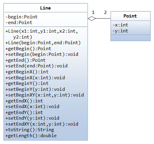 假设我们需要一个叫做Line的新类,这样我们就可以使用组合来重用Point类,可以说一条线是由两个点组成或者一条线有两个点,组合是一种"has-a"的关系。
