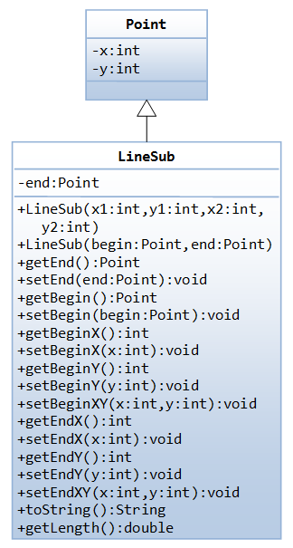 下面举个使用组合来重用一个类的例子,假设我们有一个已经存在的类叫做Point,定义如下类图所示