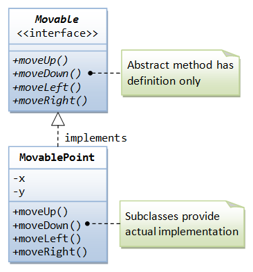 public class Circle extends Shape implements Movable, Displayable { // One superclass but implement multiple interfaces
