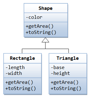 可以看到,使用抽象类很方面的解决了我们前面提到的问题,也就我们可以创建一个子类对象,例如Triangle 和 Rectangle,并且将它们向上转换为Shape类型,但是不能创建一个Shape实例。