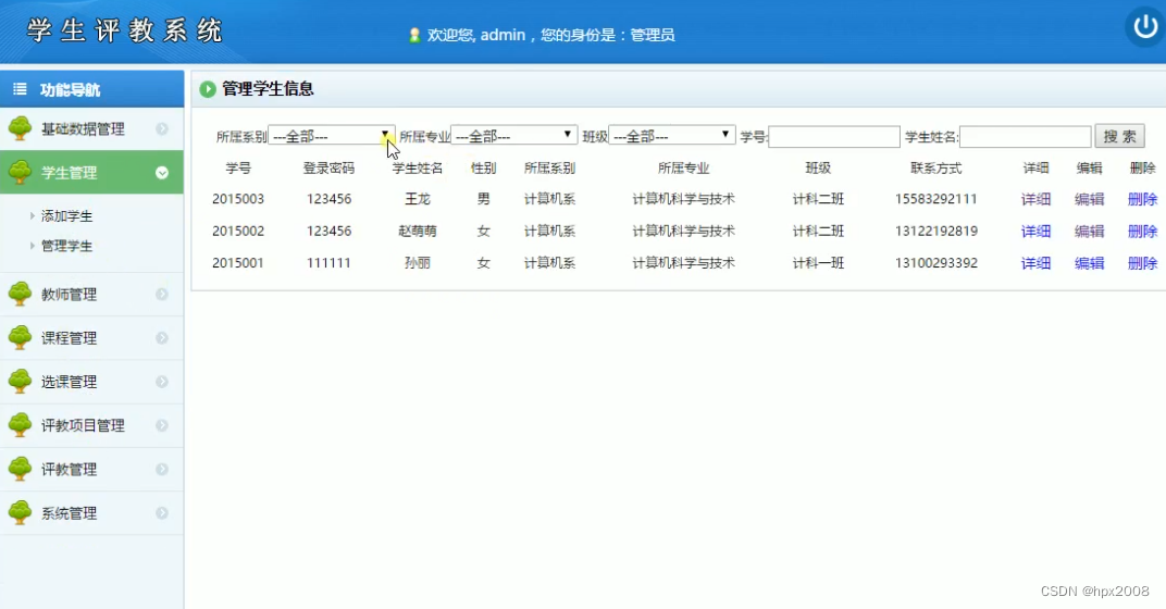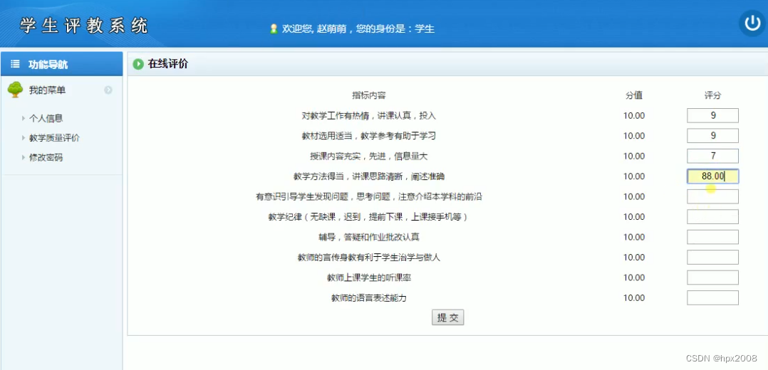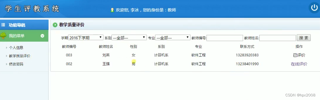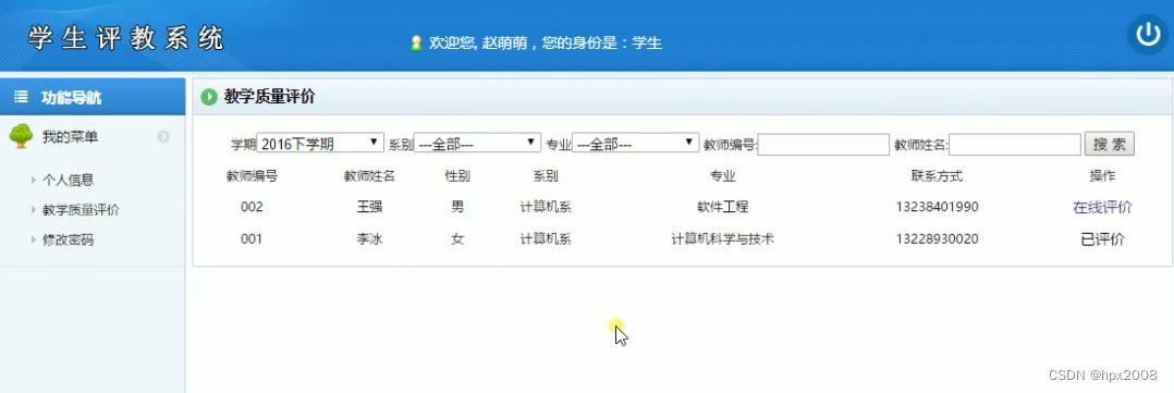 学校的主题就是教与学,要想及时全面地对教学情况时行了解和监控,使教师能够及时的对教学的内容和方向进行把控,提供决策支持和反馈信息给校院领导和学生,打破传统被动且较单一的教学模式,使教与学能够互动且以教师为主,体现学校对于学生的教学思想方针,从实际出发,提高教师们的教学质量,是当前高等院校对于教师教学评估和考核的一项重要指标,也是高校对于课程教学的研究。而以学生为主体,进行课堂教学质量评估,是当前高校教学质量评估工作的最直接的且是最实际、可行方式之一。因此,开发一款适合多门学科的在线学生评教系统,使教师和学生可以实时的将教师教学质量情况进行评价。使高校领导及管理部门可以实时进行掌握教学质量的主要问题,并能够及时、针对性地进行具体问题具体解决,可以高效、全面的提高学校的整体的教学质量和教学目标。