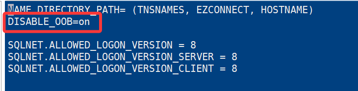 配置sqlnet.ora文件,设置参数DISABLE_OOB=on,默认没有设置这个参数(OFF),即开启了OOB。