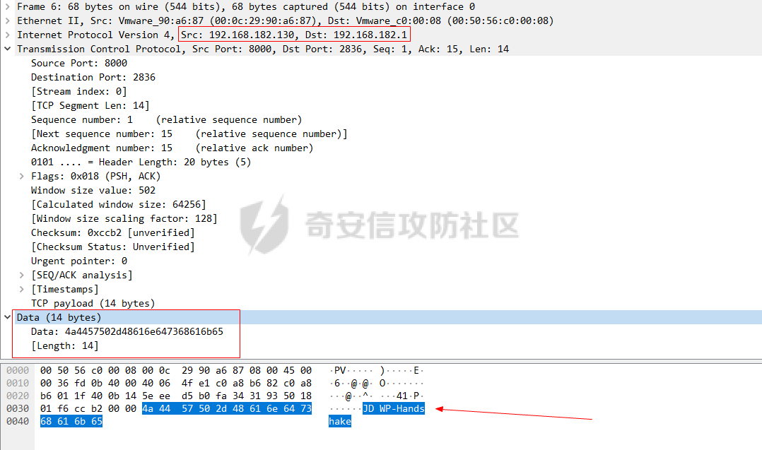 JDWP的握手过程非常简单,我们可以使用Wireshark抓包来看看握手包