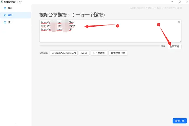 4、随后,我们需要将视频分享链接输入进这个输入框中,最后点击“全部下载”按钮,就可以下载视频啦