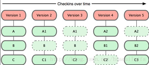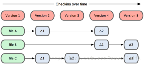 Git 和其他版本控制系统的主要差别在于,Git 只关心文件数据的整体是否发生变化,而大多数其他系统则只关心文件内容的具体差异。Git 并不保存这些前后变化的差异数据。实际上,Git 更像是把变化的文件作快照后,记录在一个微型的文件系统中。每次提交更新时,它会纵览一遍所有文件的指纹信息并对文件作一快照,然后保存一个指向这次快照 的索引。为提高性能,若文件没有变化,Git 不会再次保存,而只对上次保存的快照作一链接。