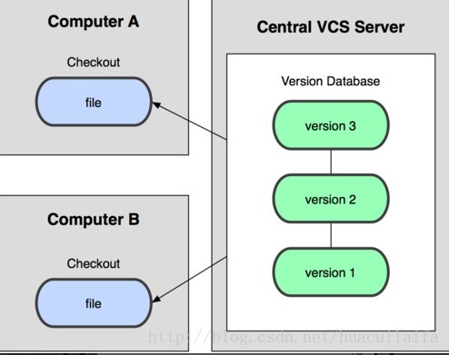 GIT跟SVN一样有自己的集中式版本库或服务器。但,GIT更倾向于被使用于分布式模式,也就是每个开发人员从中心版本库/服务器上chect out代码后会在自己的机器上克隆一个自己的版本库。