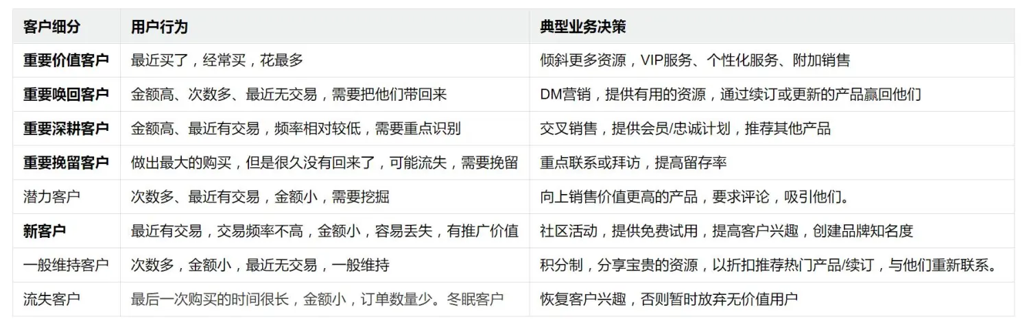 RFM模型教给你的那些典型业务决策