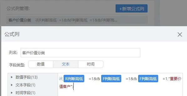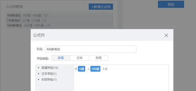 要判断水平高低肯定要有一个判断标准,可以是R、F、M的平均值/中位数/以标准差校正后的值。这里以平均值为例,同样地,在FineBI也只要拖拉就可以计算出平均值。