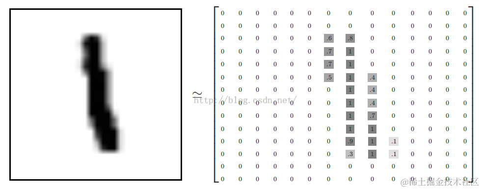 Kaggle 的数据将二维数组转化为了一维数组,也就是28*28=784列,包括图片代表的数字一共785列,所以上文中的测试和训练数据被转为[42000,785]和[28000,784]的数组,这就是图片的预处理。