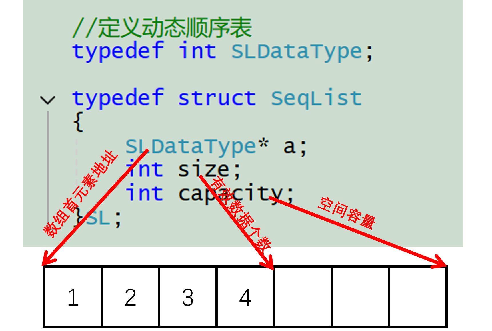 动态顺序表和静态顺序表的区别在于动态顺序表是我们需要存储数据的时候我们才向内存申请空间,也就是说我们初始情况下是不知道我们的空间大小的,当我们后面要插入数据的时候,我们才申请对应大小的空间。因为一次可能会申请多个空间,就会导致数组的空间容量和实际的有效数据个数不一样,这就要求我们定义一个capacity变量来实时记录空间容量。