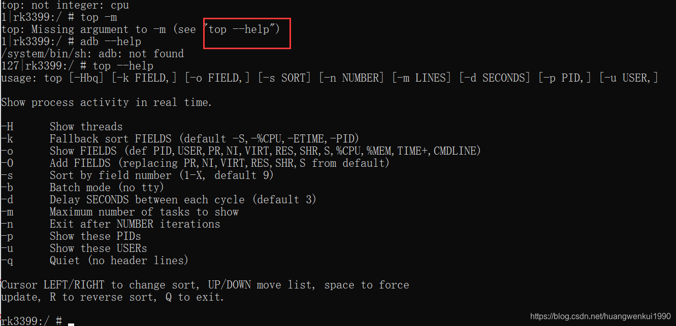 adb shell top -s cpu是按cpu排序的意思,但是我下载的adb使用-s命令时会报top: not integer: cpu
