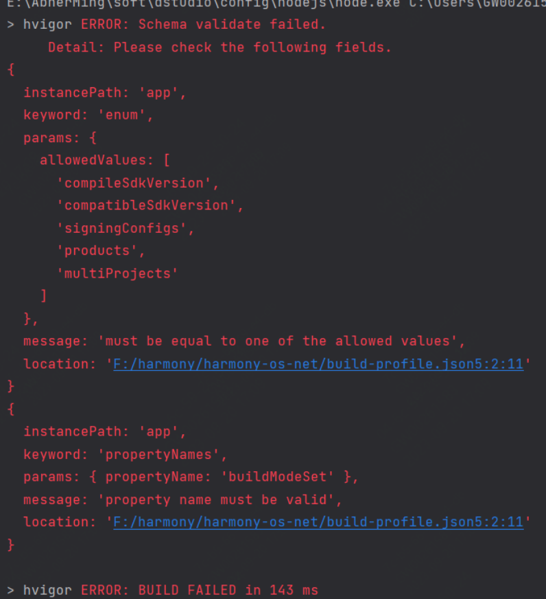 当你把根项目的hvigorfile.ts文件修改之后,迫不及待地编译后,就会报如下地错误,所以啊,尽量统一修改文件后再编译,否则就会各式问题扑面而来。