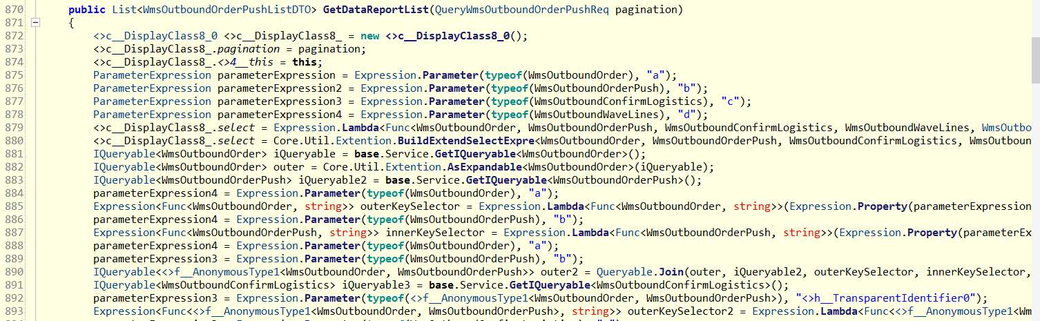 从内容看,应该是 select 语句的ExpressionTree表示,问了下朋友,说大概是报表业务,不过这些信息给他貌似也没有多大帮助,说实话到这里我其实也不知道怎么继续往下排查了,陷入了绝望。