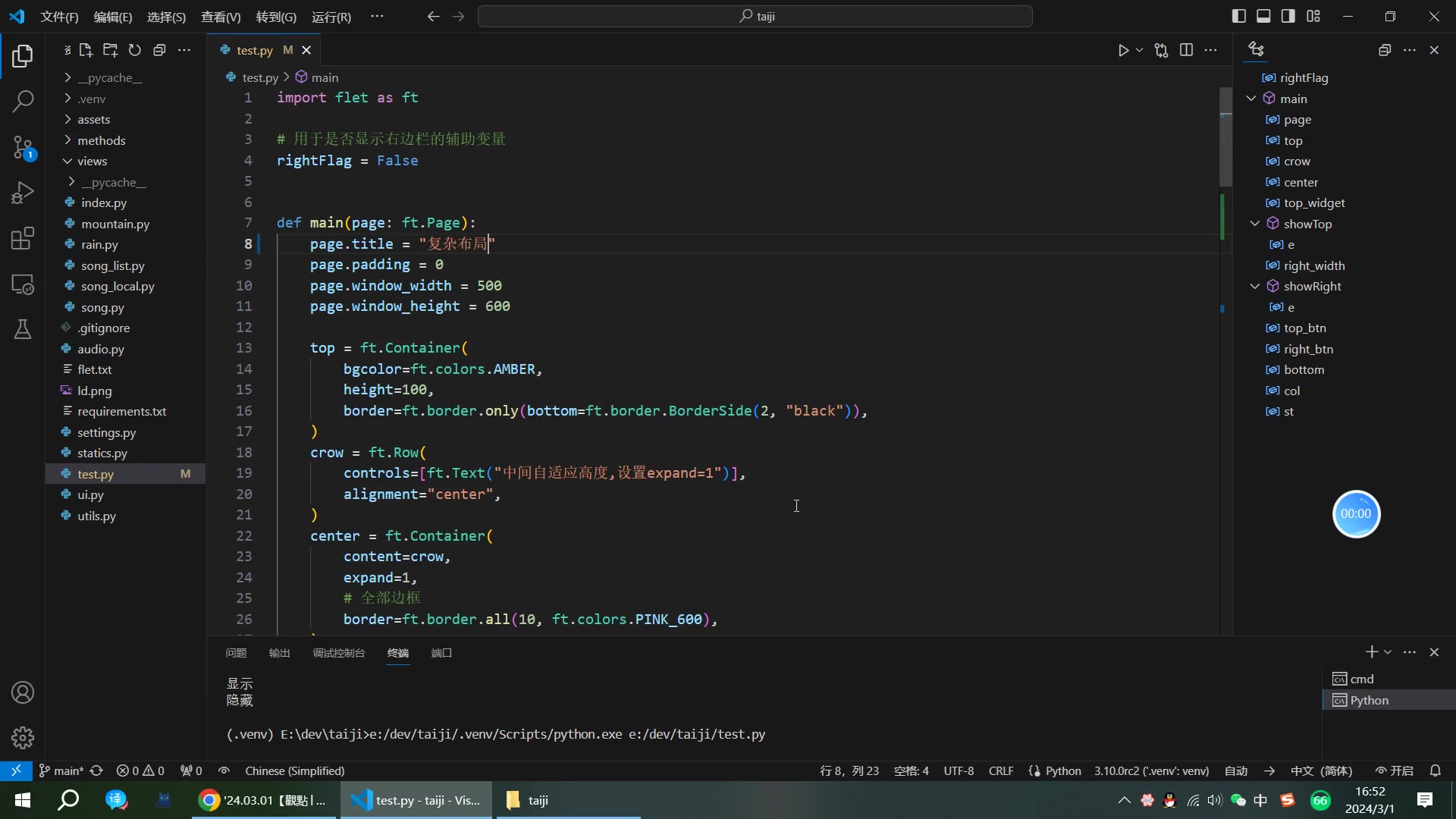 flet 音乐播放组件 audio的几点注意的地方 autoplay 这里必须要设置False。不然你要播放其中一首audio,就会播放所有overlay里面的所有audio。audio, 要使用的话,必须放在page.overlay里面才能播放。但是如果autoplay = False,就不会直接播放。src 是引入的路径,可以是本地路径或者网上一个url。最近做一个flet的播放器,遇到很多坑。我们经常是点击一首歌曲,然后想直接播放。