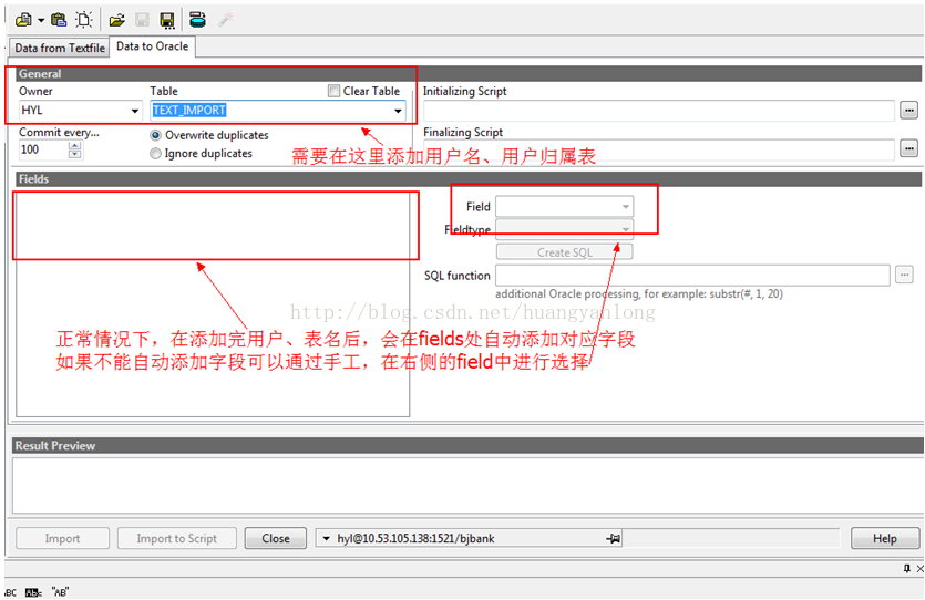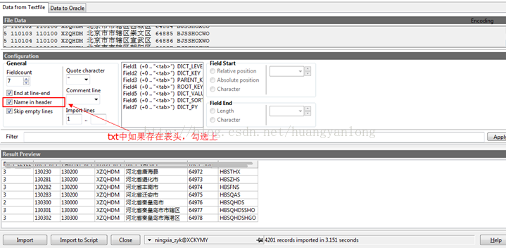 注意在上文中,在添加完txt文档这步以后,需要切换到“Data to Oracle”项目下,进行对应关系设置,参考如下图说明: