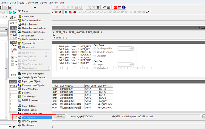 使用PL/SQL Developer将数据导入到oracle中,在Tools栏找到Text importer选项,如下: