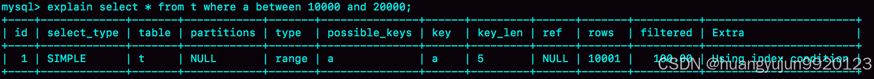 select * from t where a between 10000 and 20000;
