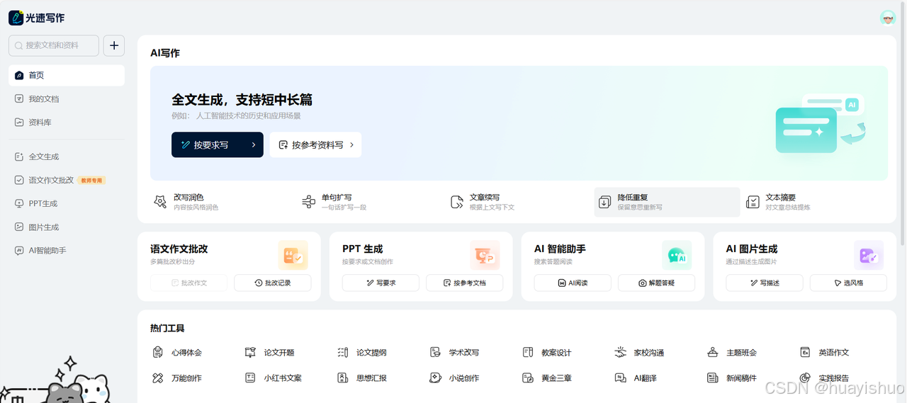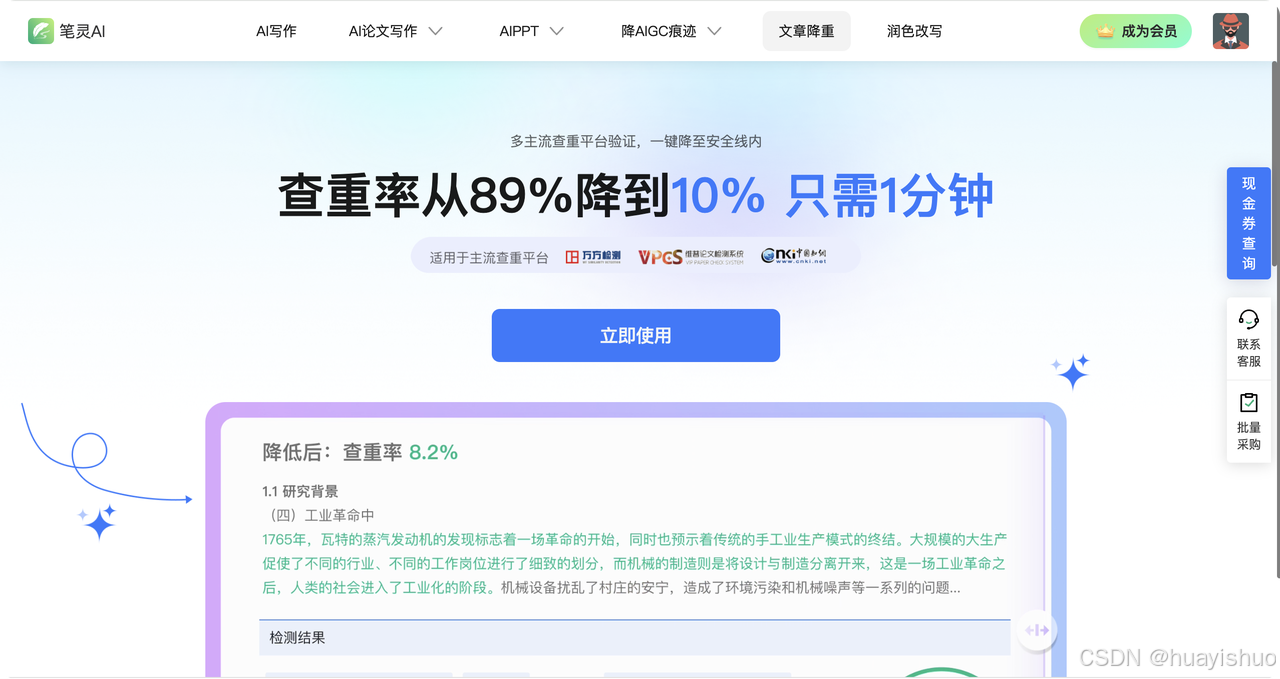 多场景适用:无论是学术论文、工作报告、活动策划,还是日常写作等各种类型的文本,都可以使用光速写作的降重功能来提高原创性,满足不同用户在不同场景下的写作需求。