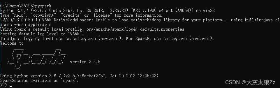 如果在命令提示符中出现这个大大的spark就证明我们终于成功了🤣🤣🤣