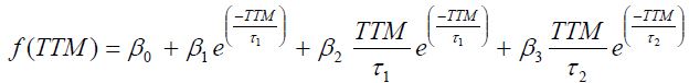 其中z是spot rate(input);Beta1、2、3和 tao 1、tao 2 是需要估计的参数,TTM是期限。