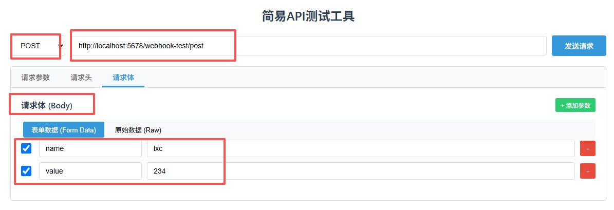 POST只演示一种方法,另外一种方法和Get请求方法一保持一致: