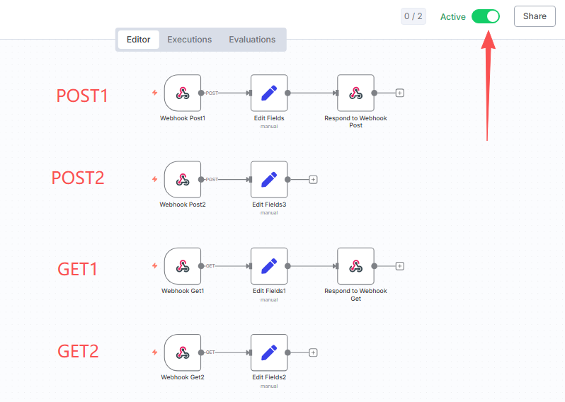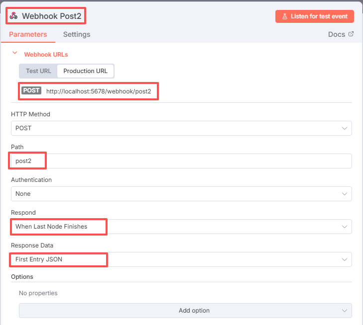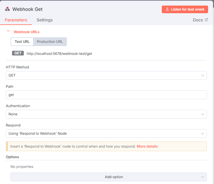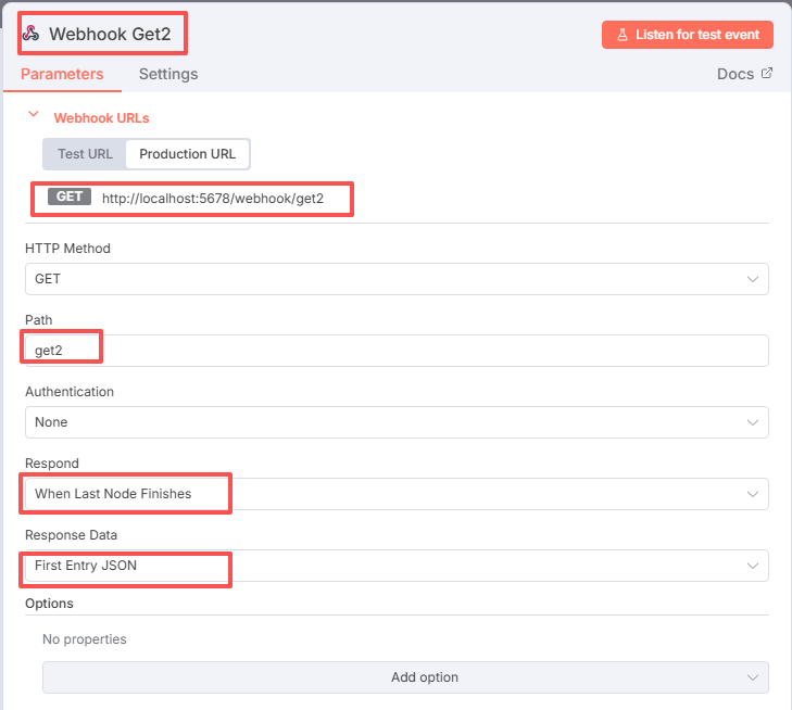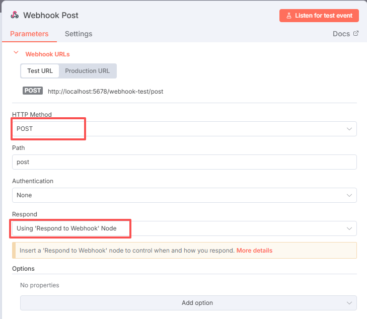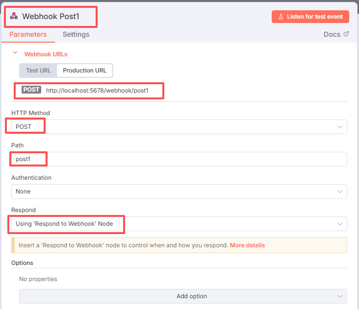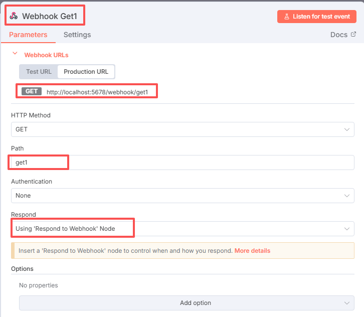 这次 Webhook 使用 Respond to Webhook节点来作为数据返回节点。