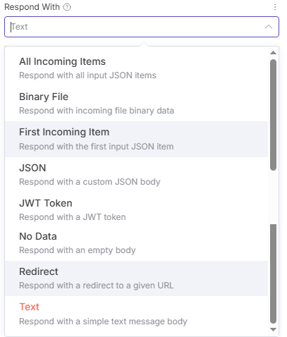 这些选项是用于设置响应(Respond With)的不同类型,以下是对每个选项的介绍: