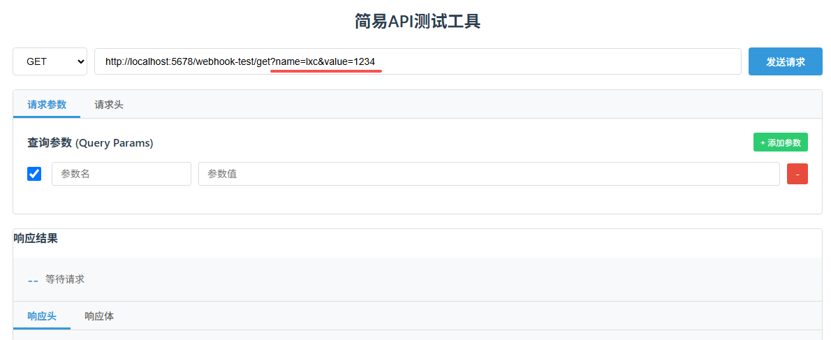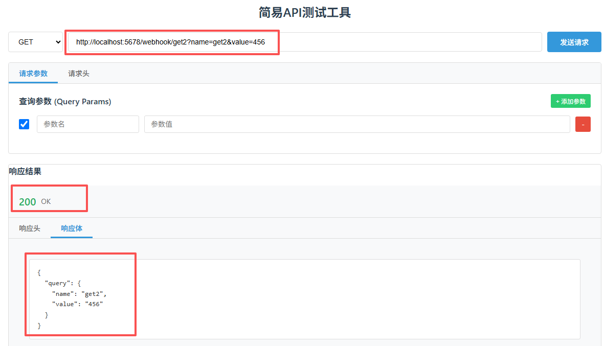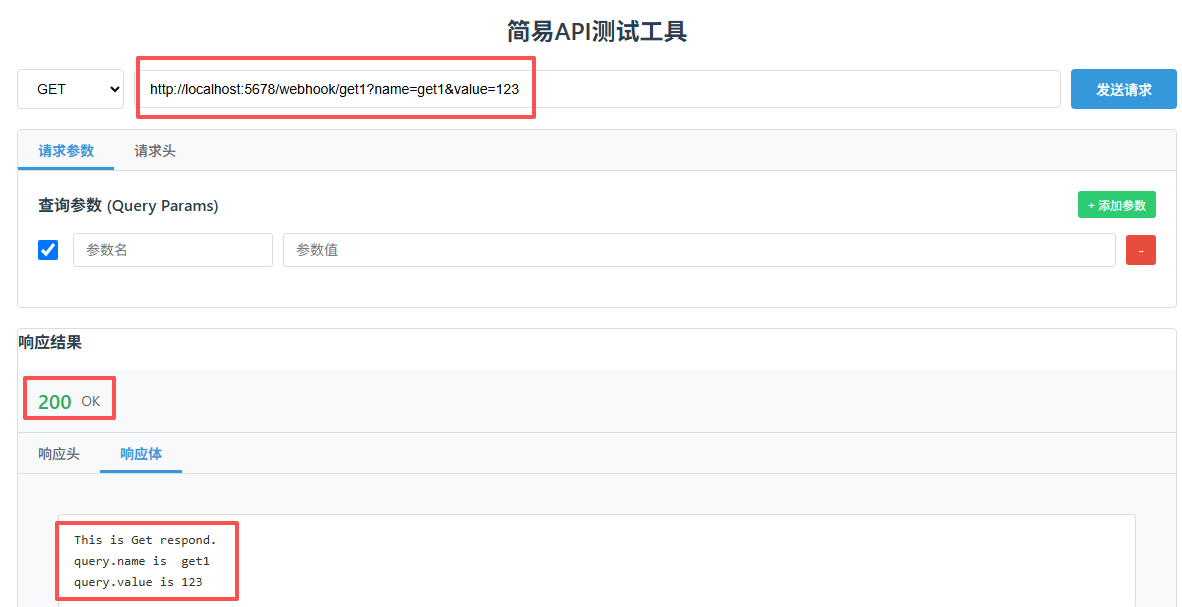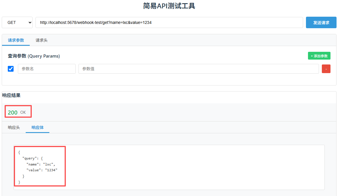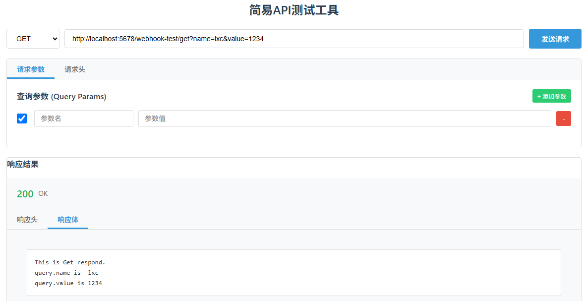 然后模拟一个Get请求,点击发送请求(以下工具是我使用AI编程开发的简化版的HTTP模拟工具,你可以使用Postman或者类似的工具都可以):